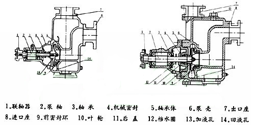 3、為使泵體內(nèi)能夠保持一定的儲(chǔ)存液,以達(dá)到較好的自吸能力和防止機(jī)械密封的干磨擦,必須使泵的進(jìn)口高于泵軸的中心線。